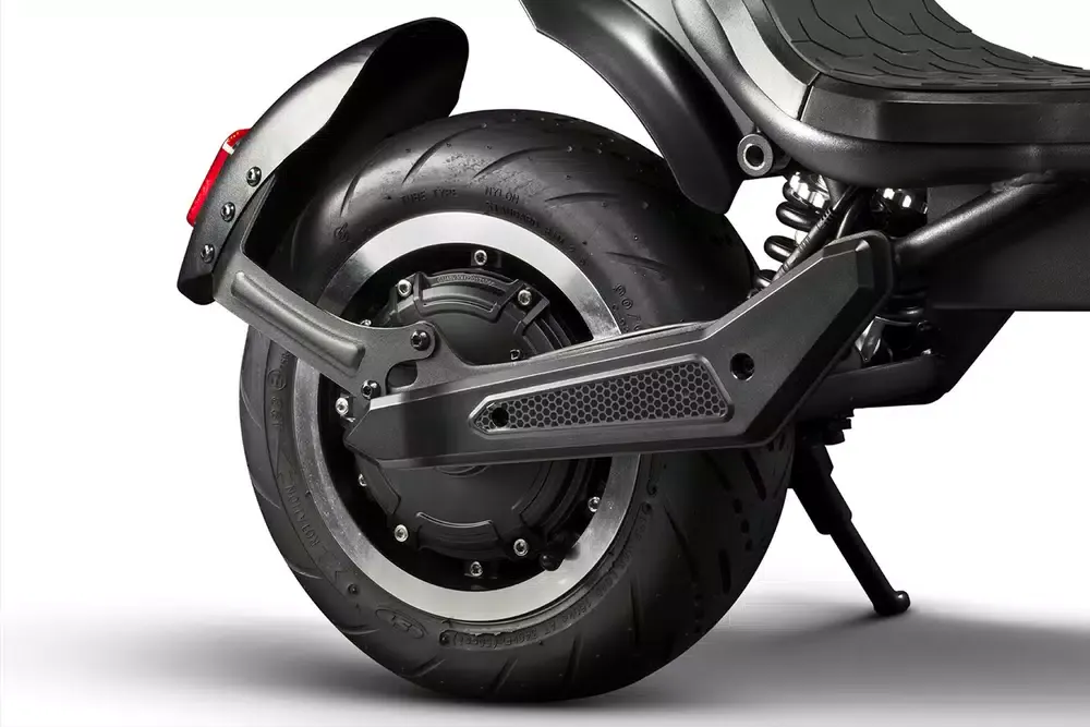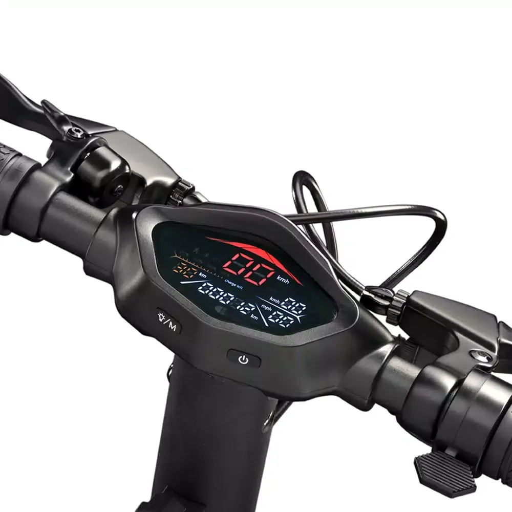 The dual suspension system ensures exceptional comfort and optimal control of the scooter. It absorbs potholes and unevenness in the ground without problems, offering a smoother and more stable ride even on uneven paths. This reduces fatigue and improves the driving experience, making every journey more enjoyable and relaxed.